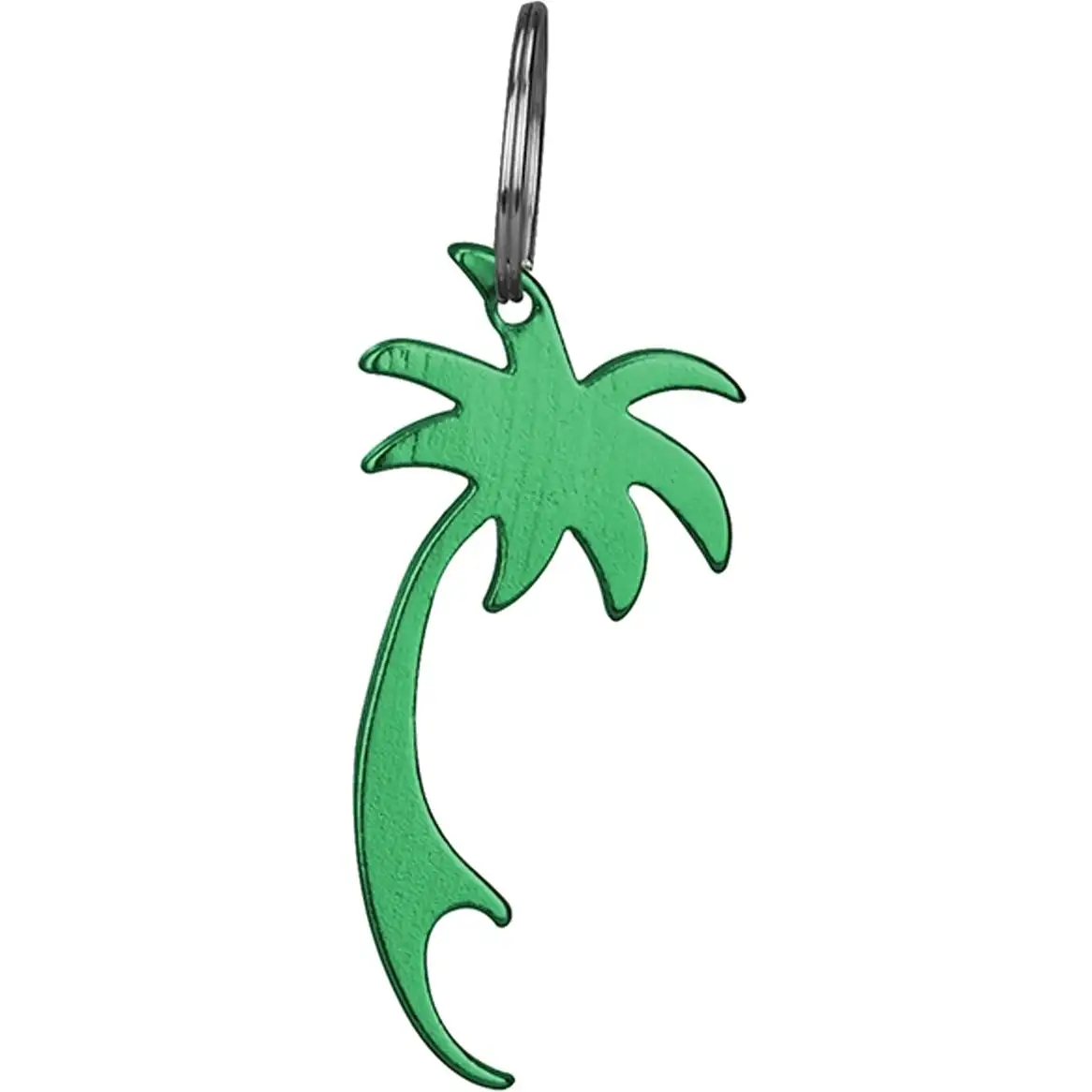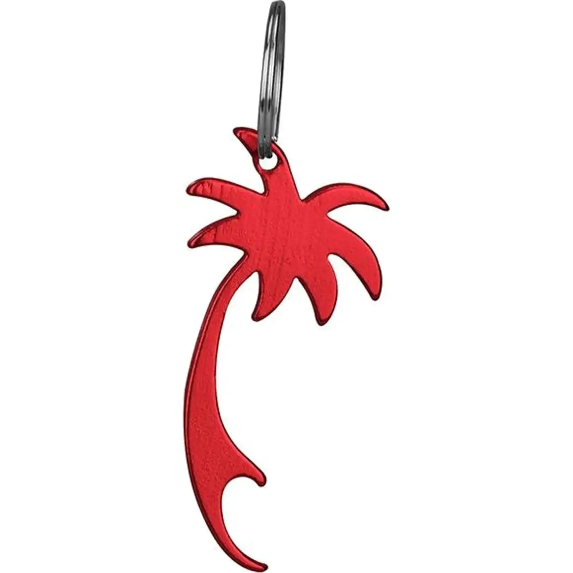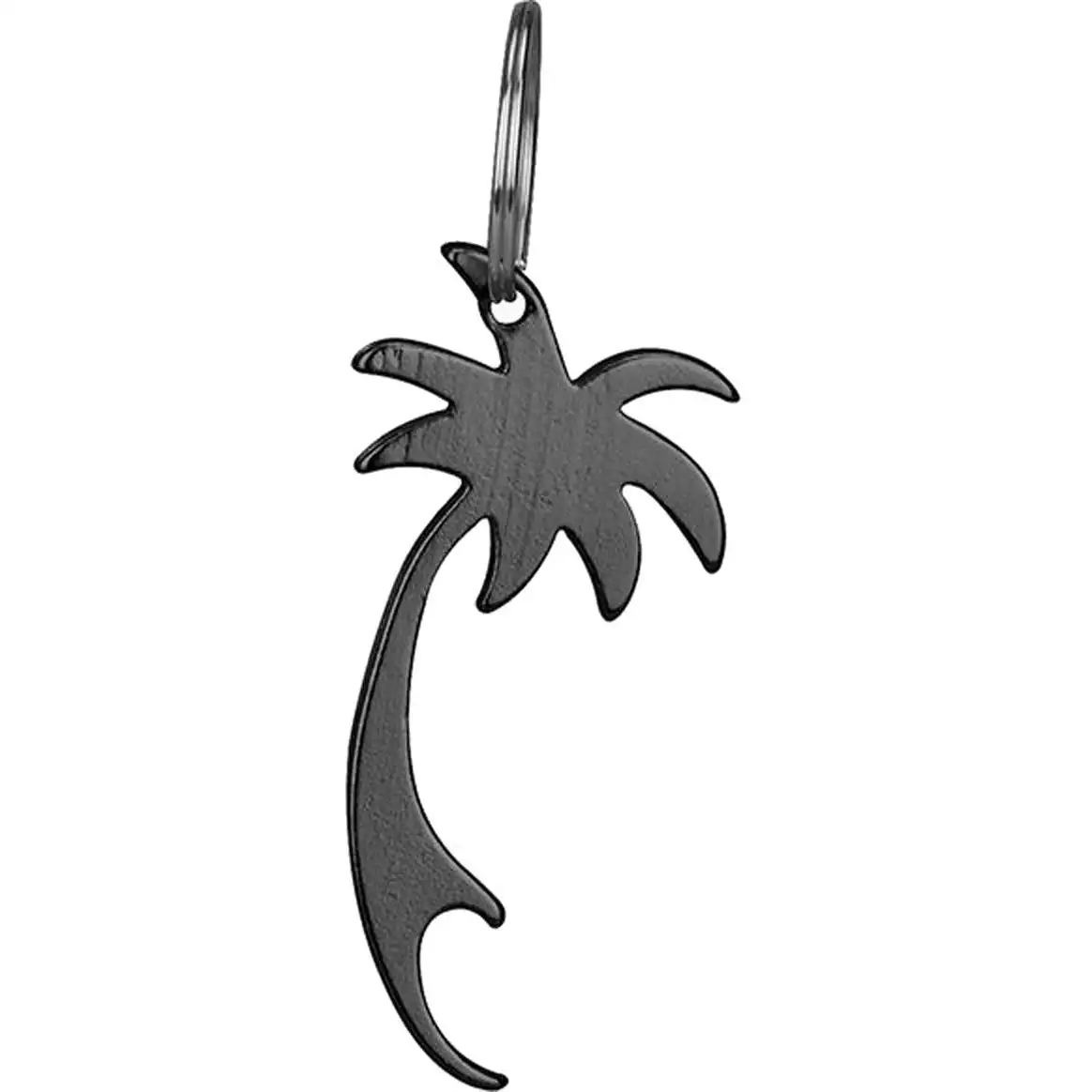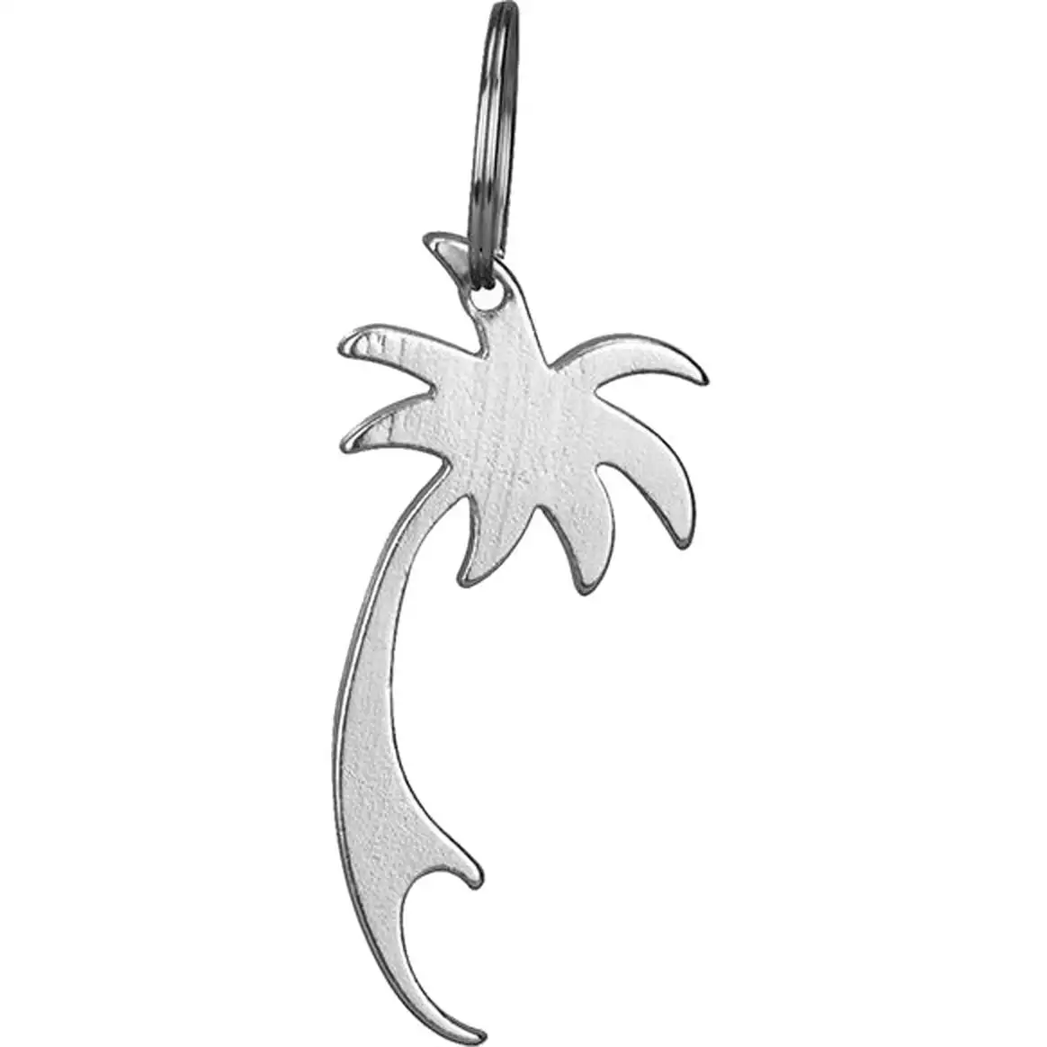 This bottle opener key holder is designed in the shape of a coconut palm tree, perfect for tropical bar promotions. It is commonly purchased wholesale by businesses for promotional activities and events. Made from durable stainless steel and polycarbonate, it offers a custom logo option for branding.