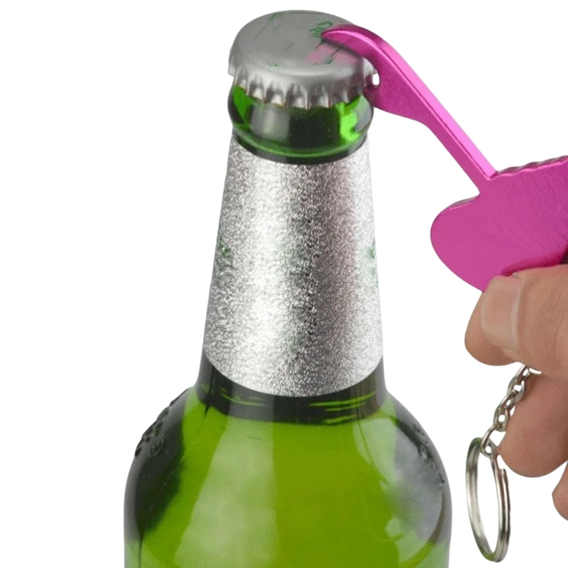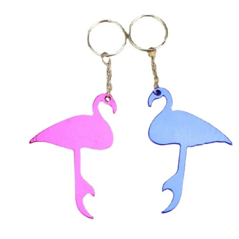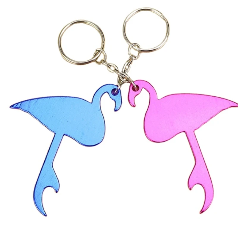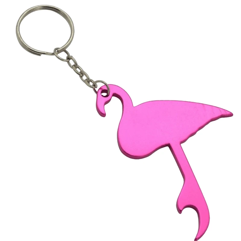 The HXY Lovely Pink Flamingo Bottle Opener Keychain is a portable and personalized bottle opener made from aluminum alloy. It is popular among businesses looking for promotional items or gifts for beer lovers. This eco-friendly bottle opener features a smooth edge and an engraved logo.